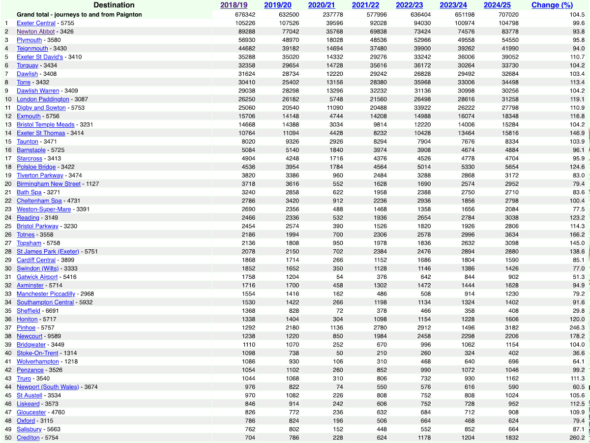 This is in answer to a request from a fellow campaigner for pointers to data on loadings and journeys of trains to and from Torbay (TLCs PGN TQY and TRR, to help provide data and inform him and his colleagues of when and where people are going.